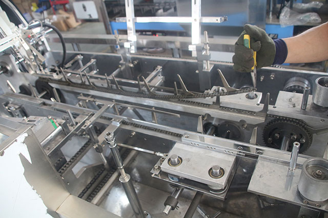 半自动装盒机只有封盒功能的纸盒包装机,又称“封盒机”。半自动装盒机,需用手工开盒、装盒,再将装有物料的盒子经过机器封盒。自动装盒机带有自动开盒、入料、封盒功能的纸盒包装机。全自动装盒机带有自动放料或与